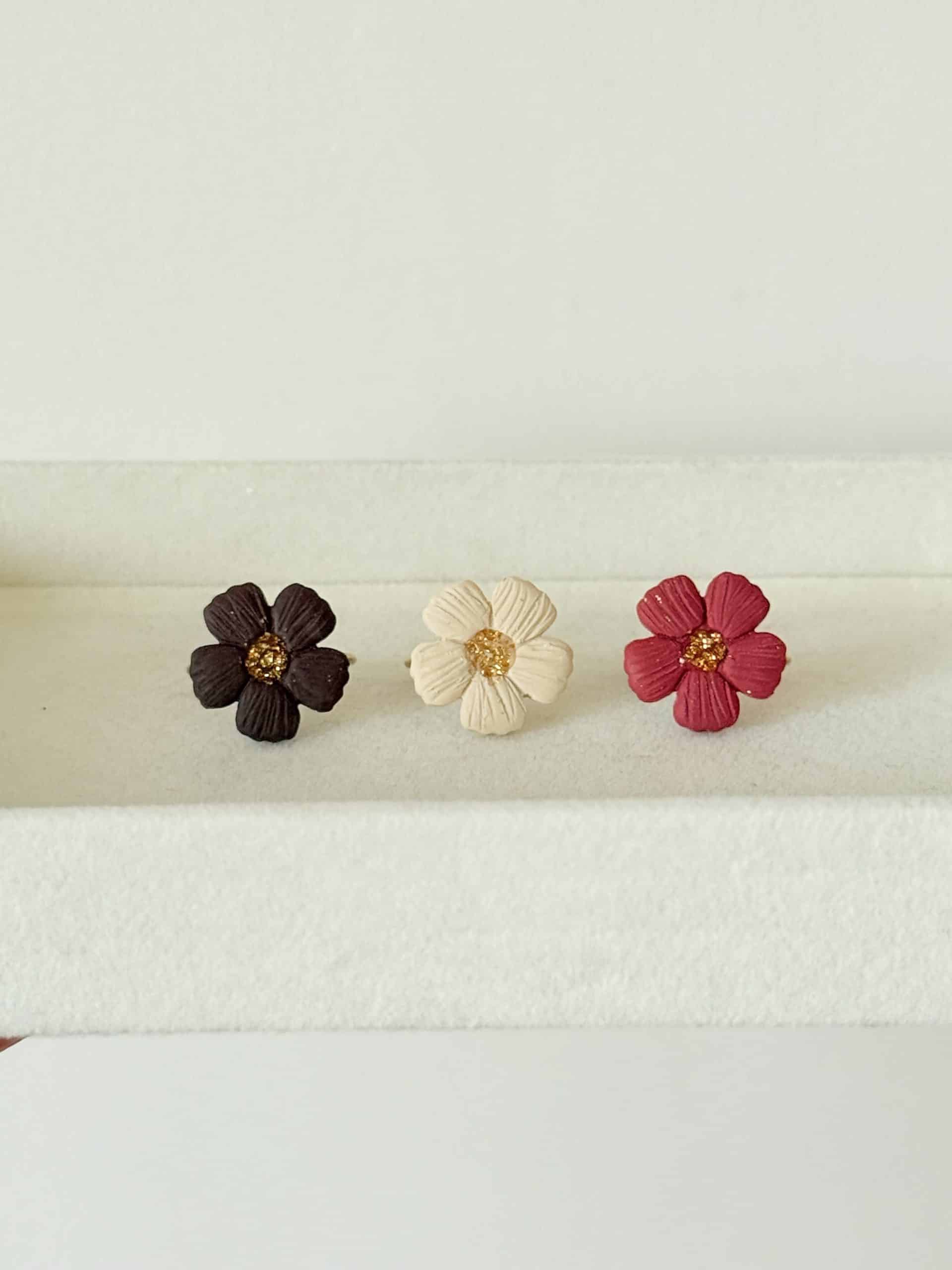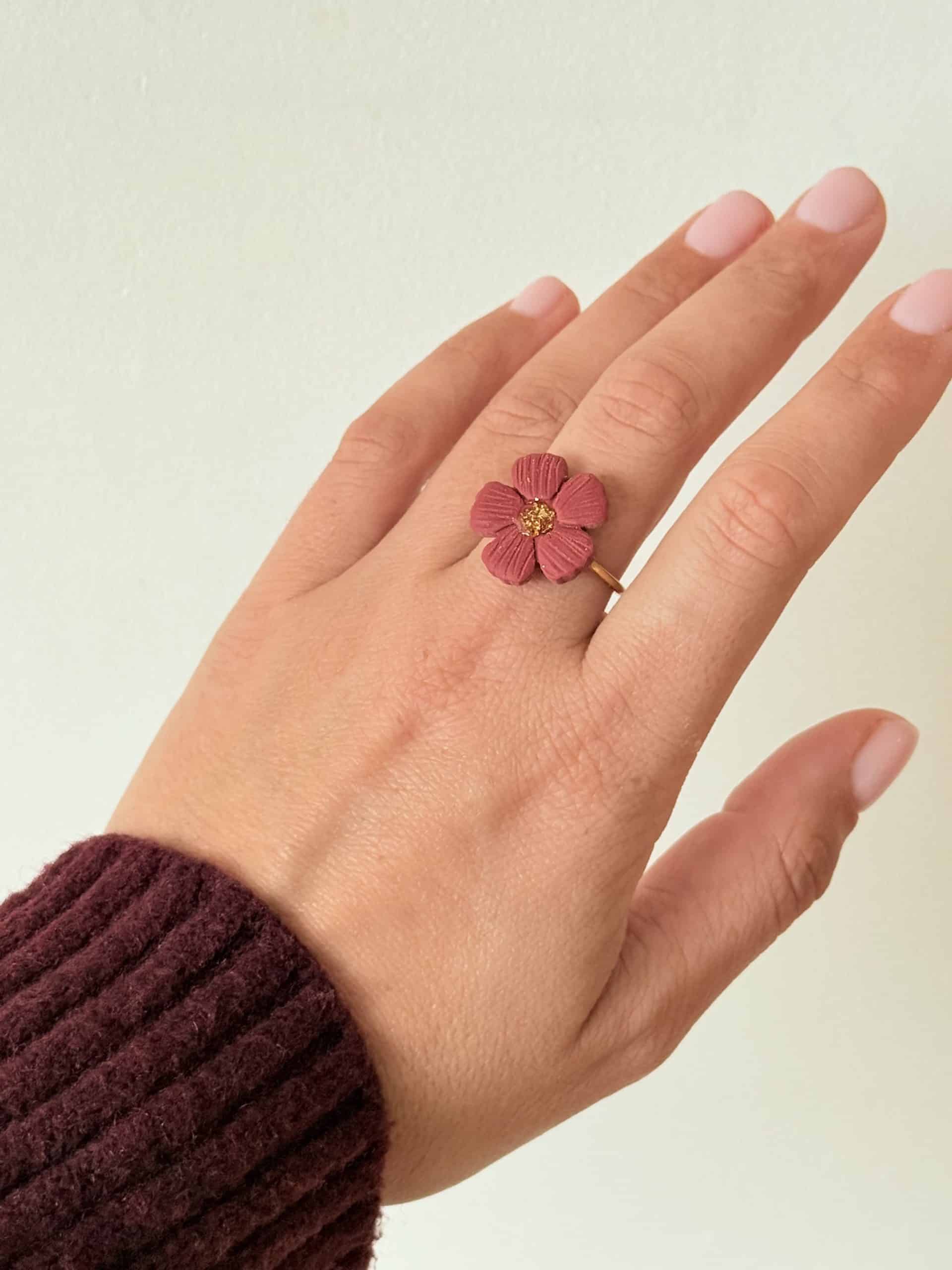 Fleur artisanale: pâte polymère – feuilles d’or – résine
