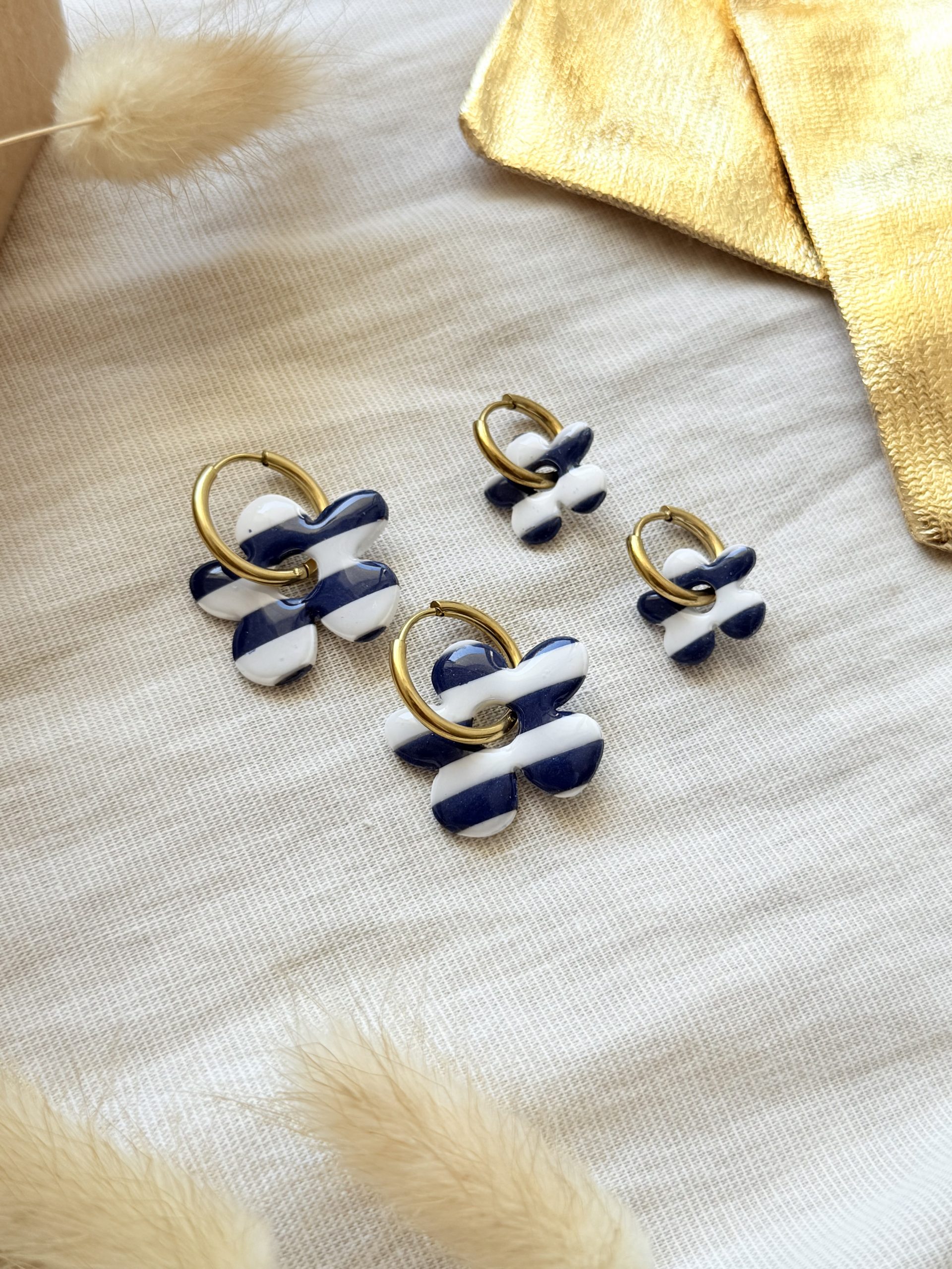 Vos boucles d’oreilles sont glissées dans un pochon couleur or.
